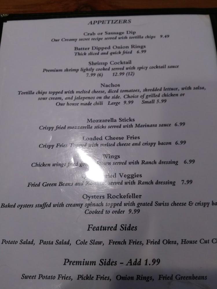 Appetizers like Crab Dip or Onion Rings are popular shares to start a meal. Salads come fresh and crisp, perfect for a lighter lunch option. Diners can savor specialties like the Ribeye Steak, which promises a satisfying experience. Menus cater to kids with appealing choices that won't break the bank. Desserts round off meals nicely, satisfying sweet cravings with ease. Whether stopping by for lunch or dinner, each visit holds delightful possibilities.